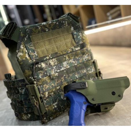 模組化 腿掛、腰掛、胸掛100%互換。 針對不同任務,使用者從制服換成便服時,必須換成另一種槍套,只需更換槍套即可,不需要將背板拆卸。 特別設計的模組具有導軌,可以一鍵組裝和拆卸槍套。