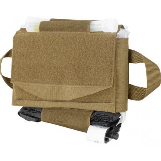 MICRO TK POUCH 橫式醫療袋被設計用來攜帶必要的緊急醫療用品。它採用CONDOR專有的LCS材料製造,輕便耐用,外層採用包覆式設計,可安全固定插入物,需要時快速取出。拉動手柄可從攜帶者的任一側快速展開插入物品。